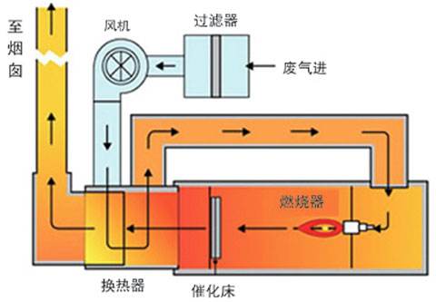 催化燃燒法:它是利用催化劑做中間體,使有機氣體在較低的溫度下,變成無害的水和二氧化碳氣體,即:
